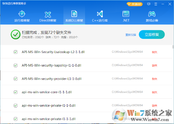 3.找到缺失的dll文件點擊即可進行修復(fù)