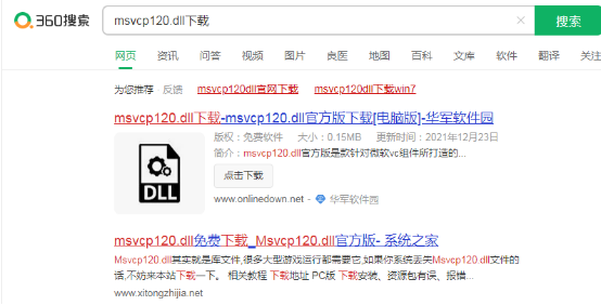 1.在瀏覽器中搜索msvcp120.dll文件并下載解壓