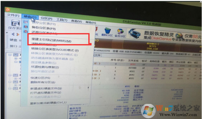 3、進(jìn)入pe系統(tǒng)后,打開diskgen工具,然后重建RMB主引導(dǎo)分區(qū)