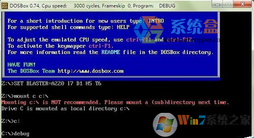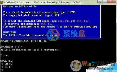 2、如果是64位的操作系統(tǒng),可能不能在命令提示符中運(yùn)行debug命令,可以使用DOSBox軟件,并下載debug.exe winwin7.com程序。