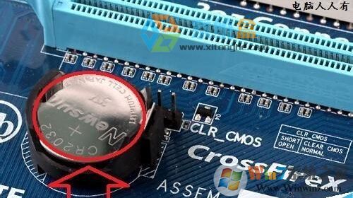 7、如果進(jìn)不去操作系統(tǒng),那么只有使用扣電池,因?yàn)殡娔X關(guān)機(jī)之后,主板上的紐扣電池還會繼續(xù)計時工作,如果將其拆除(數(shù)十秒),主板訊息就會因?yàn)閿嚯姸辶?,從而清除用戶自設(shè)的密碼,還原到BIOS的出廠默認(rèn)值(無密碼),然后再按上去即可。