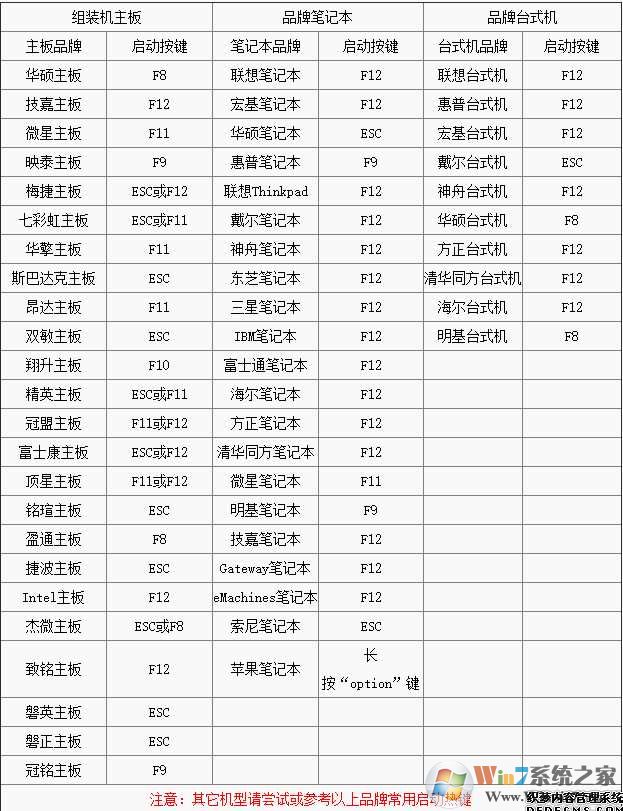 下圖就是不同主板、筆記本、品牌臺機進BIOS的熱鍵圖標(biāo),大家可以參考一下。
