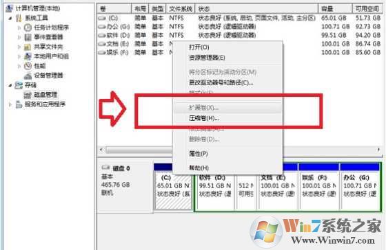 首先:想要實現(xiàn)Win7 C盤擴展卷,必須要從相鄰的緊鄰D盤中擴展,也就是說,如果要擴展C盤容量,那么我們之前壓縮出來的綠色未分區(qū)磁盤必須在C盤緊鄰的右側(cè),而之前大家所壓錯出的綠色未分區(qū)磁盤均不緊鄰C盤右側(cè),這也就是導(dǎo)致C盤不能擴展卷的原因。
