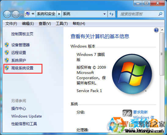 2、點(diǎn)擊“高級(jí)系統(tǒng)設(shè)置”選項(xiàng),如下圖所示www.xitonghe.com/win7/ :