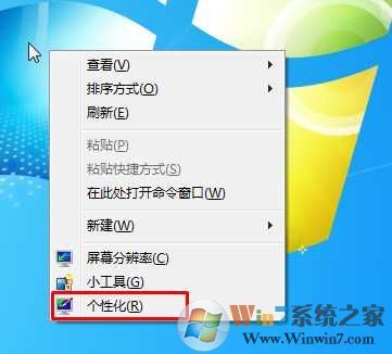 1、右鍵在桌面上點(diǎn)擊,然后選擇“個(gè)性化”,如圖1;
