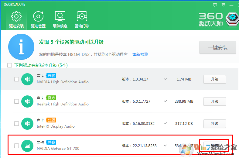 2、如正常的情況下我們嘗試更新一下顯卡的驅(qū)動(dòng)程序,如若不知道如何更顯顯卡驅(qū)動(dòng)的,可以下載一個(gè)360驅(qū)動(dòng)大師,一鍵傻瓜式安裝即可