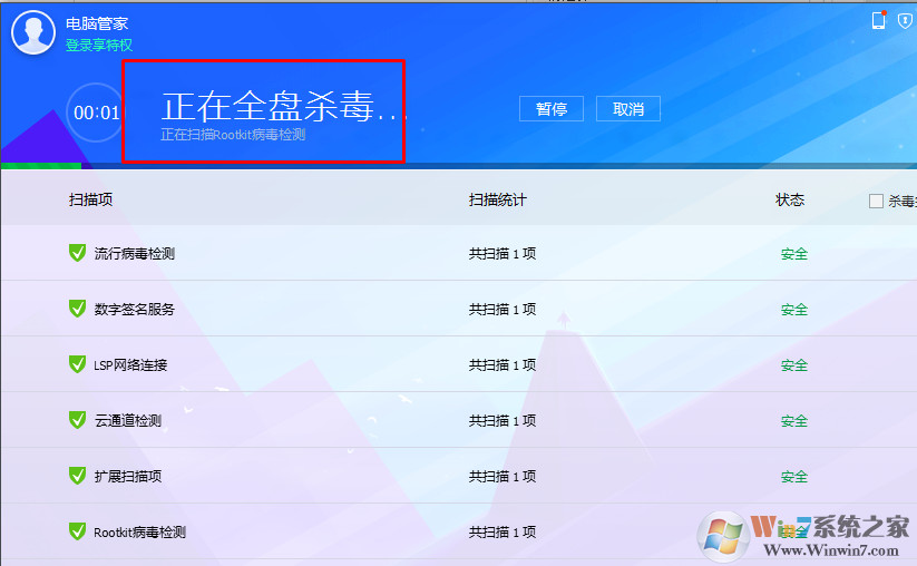 4、進(jìn)行一次全盤病毒查殺