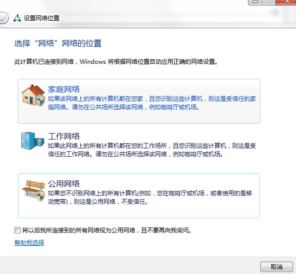 5、會(huì)跳出來每次連接新的網(wǎng)絡(luò)選折好模式后都會(huì)讓你選擇的具體功能,大家可以視自己的需要設(shè)置