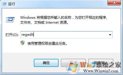 1、首先Win+R調(diào)出“運(yùn)行”,鍵入regedit并回車,打開注冊(cè)表編輯器。