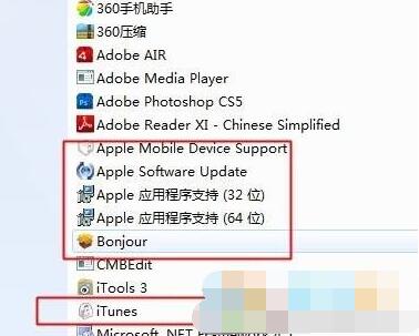 6、在卸載界面將按以下順序卸載程序【iTunes】— 【QuickTime】— 【Apple Software Update】—【Apple Mobile Device Support】—【Bonjour】—【Apple Application Support】,沒有的話就跳過;