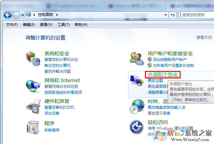 依次打開“控制面板”,“外觀與個(gè)性化”。具體如下圖