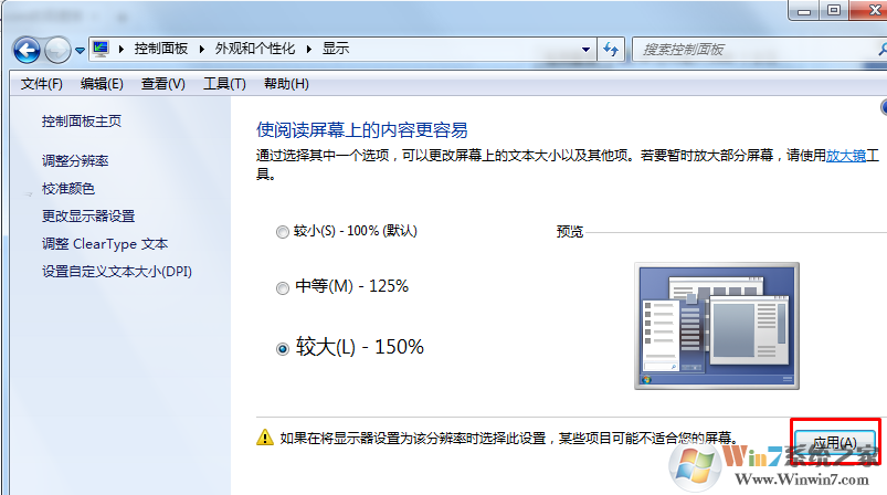 win7系統(tǒng)字體大小的設(shè)置方法二: