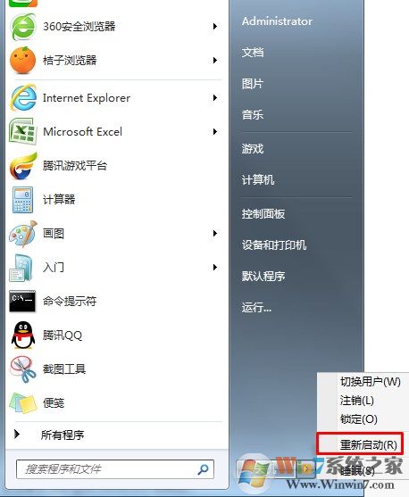 8、點擊開始——重新啟動,我們的設置就完成了。