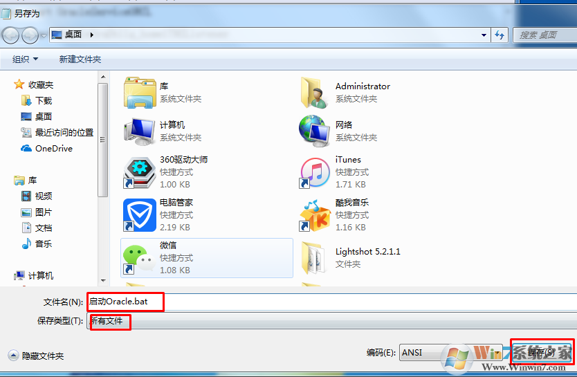 4、然后另存為,命名為啟動oracle.bat,文件格式選擇位所有