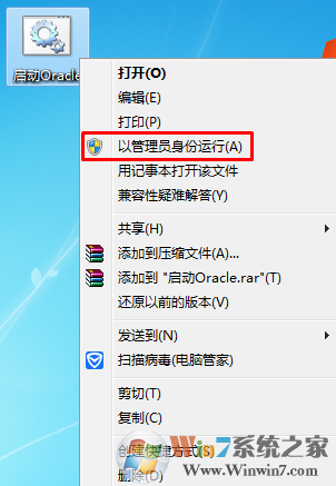 5、這樣我們就可以在桌面上看見啟動oracle.bat這個命令文件了,只需要右鍵以管理員模式運行即可開啟服務(wù)