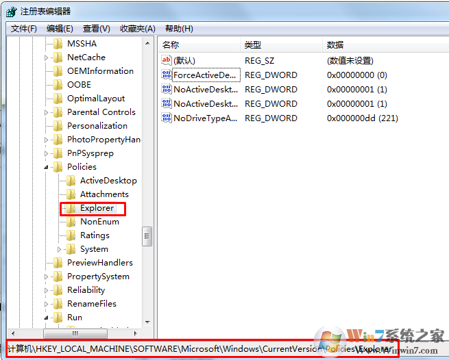2、按照順序依次打開HKEY_LOCAL_MACHINE\SOFTWARE\Microsoft\Windows\CurrentVersion\PolicIEs\Explorer\Run,在其中找到soundmax名稱相關(guān)的選項(xiàng)值,并刪除。