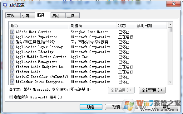 4、在對(duì)話框上面選項(xiàng)卡中切換到“服務(wù)”選項(xiàng)卡,和上面一樣找到與soundmax相關(guān)的項(xiàng)目。如果有,請(qǐng)取消前面的勾選。
