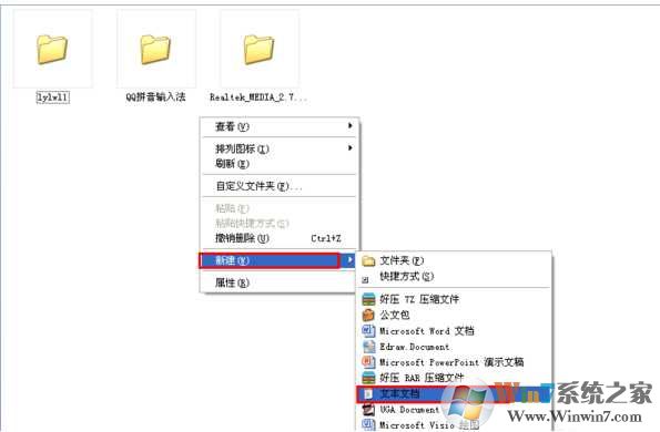 1.右鍵點擊空白處,選擇“新建”,點擊“文本文檔”;