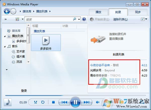 以上就是Win7系統(tǒng)中自帶的windows media player創(chuàng)建播放列表并刻錄的方法了,希望對大家有幫助哦。
