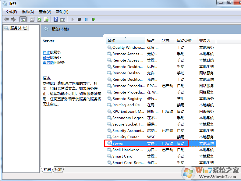 2、在服務(wù)中找到Server服務(wù),
