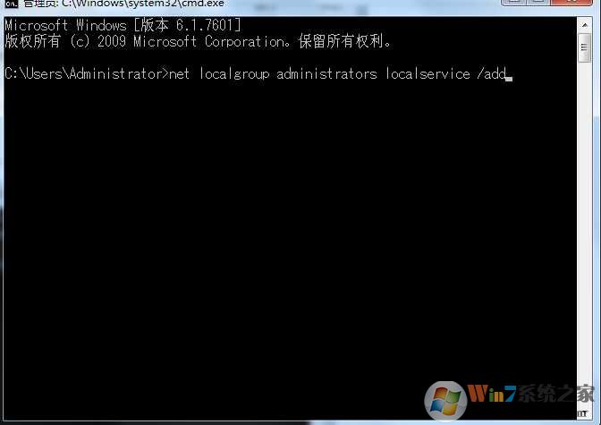 ②在命令提示符窗口輸入(按回車執(zhí)行):net localgroup administrators localservice /add