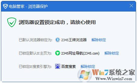 5、提示設(shè)置成功,即完成默認(rèn)瀏覽器和主頁的鎖定。
