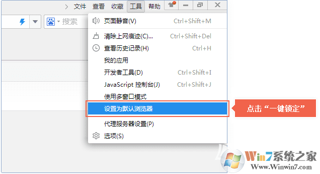 打開2345王牌瀏覽器 — 主菜單“工具” — 點(diǎn)擊“設(shè)置為默認(rèn)瀏覽器”。