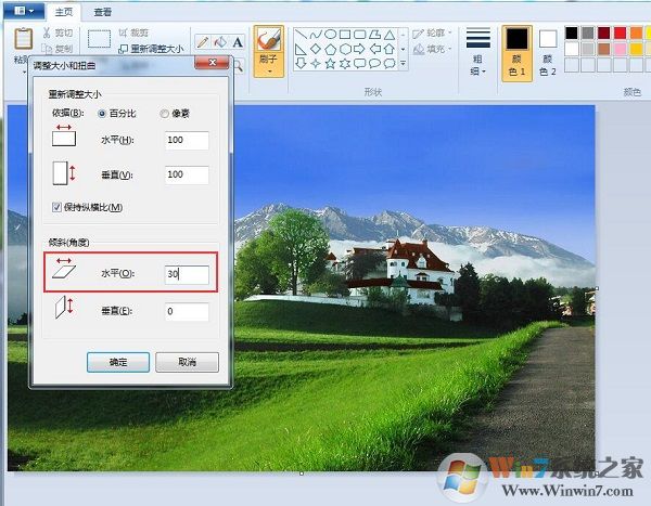 6、如果我們還要傾斜效果,可以輸入角度如30度,