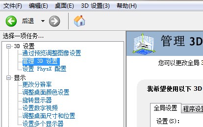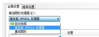 3.在右側(cè)會(huì)出現(xiàn)如下圖界面,切換到全局設(shè)置選項(xiàng)卡,在選項(xiàng)卡之中的“首選圖形處理器”欄目之后總選擇獨(dú)立顯卡。