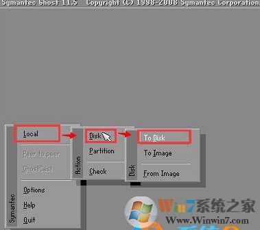 3、打開(kāi)Ghost 后,使用鍵盤(pán)選擇 Local ——》disk ——》Disk;