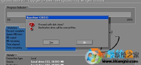 6、接著還是點(diǎn)擊OK,開(kāi)始整個(gè)磁盤(pán)的復(fù)制過(guò)程(出現(xiàn)確定框選擇OK),這個(gè)時(shí)間和你其中文件多少有關(guān),文件很多的話可能長(zhǎng)達(dá)幾小時(shí);