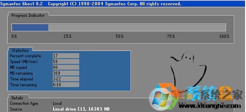 3、點(diǎn)下確定后,系統(tǒng)會(huì)自動(dòng)重啟并開(kāi)始備份過(guò)程,這里就不表述了,備份完又進(jìn)入到系統(tǒng),把備份好的GHO文件復(fù)制到U盤(pán)中;(到這里大家應(yīng)該知道了,接下去跟安裝系統(tǒng)那么簡(jiǎn)單)