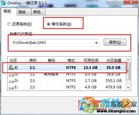 2、打開(kāi)后選擇系統(tǒng)備份,然后選擇C盤(pán),并選擇好存放GHO備份的文件夾,單擊確定;