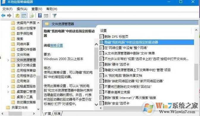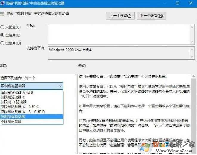 比如小編選擇的就是限制D驅(qū)動(dòng)器,用于隱藏D盤。