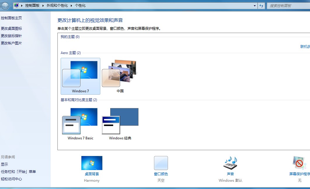 然后,從Win7個(gè)性化窗口中隨意更換一個(gè)主題就可以了。這樣,Windows7就會(huì)自動(dòng)更新圖標(biāo)緩存,自然也就解決了這個(gè)問(wèn)題,簡(jiǎn)單吧。