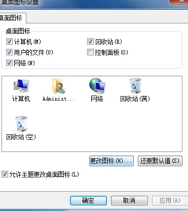 有些朋友使用的是Win7家庭基礎(chǔ)版(Home Basic),不具備Win7主題更換功能那也不要怕,我們還是進(jìn)入控制面板,然后點(diǎn)擊“更改桌面圖標(biāo)”,點(diǎn)還原默認(rèn)值就可以了。