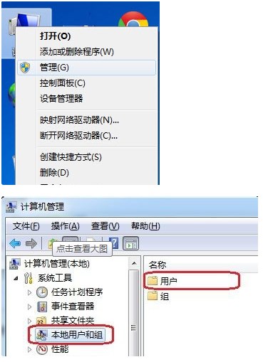 1、進入計算機管理窗口后,選擇【本地用戶和組】,選擇【用戶】