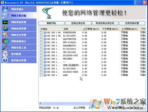 1.可以控制每一臺(tái)機(jī)器的上傳,下載的速度,還可以對(duì)通常的聊天軟件進(jìn)行限制。