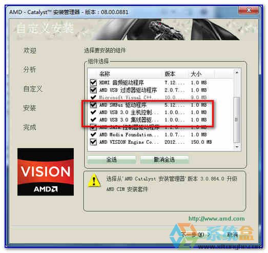 選擇下一步,確認(rèn)“USB3.0”項(xiàng)目勾選上;