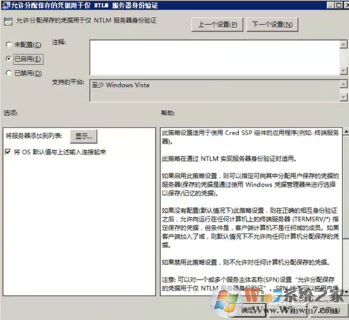3.打開之后,選擇“已啟用” 并且復制 TERMSRV/*(幫助說明文字里面有)