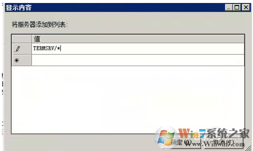 4.點擊顯示,輸入 或復制TERMSRV/* 到 值里面(這個表示允許保存來自所有計算機憑證)