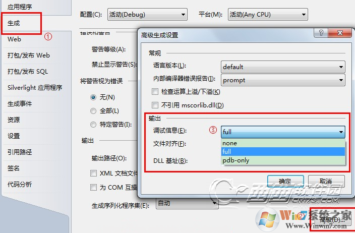 打開類庫項(xiàng)目屬性頁面→切換到生成選項(xiàng)卡→點(diǎn)擊高級按鈕→將調(diào)試信息一項(xiàng)設(shè)置為none