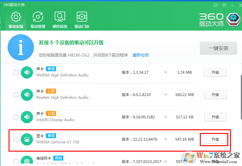 安裝最新的顯卡驅動程序,這方面我們可以借助第三方工具完成,如360驅動大師、驅動精靈等