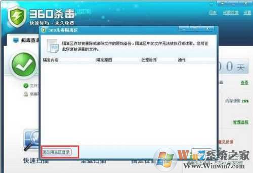 首先打開360殺毒主程序,在右下角點擊文件恢復區(qū),然后就可以更改隔離區(qū)目錄了。