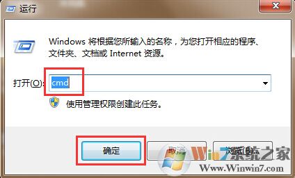 1.使用組合快捷鍵win鍵+r鍵打開運(yùn)行窗口,輸入“cmd”回車確認(rèn)打開命令窗口。如下圖所示