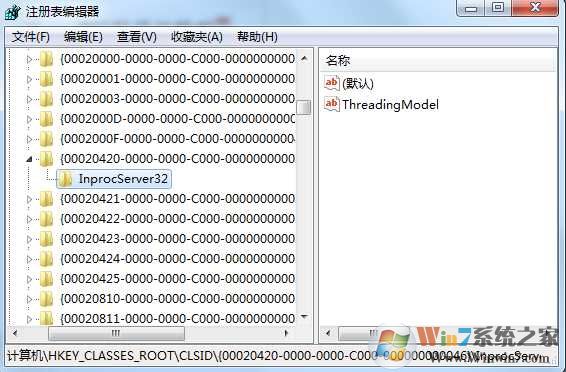 2、定位到:HKEY_CLASSES_ROOT\CLSID\{00020420-0000-0000-C000-000000000046}\InprocServer32