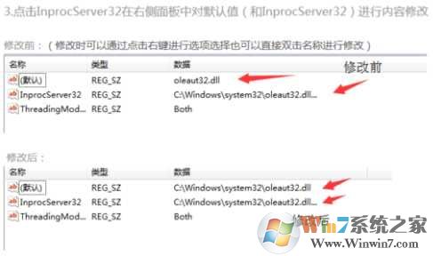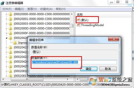 3、選中InprocServer32,把右側(cè) 默認(rèn)雙擊打開,修改為:c:\windows\system32\oleaut32.dll