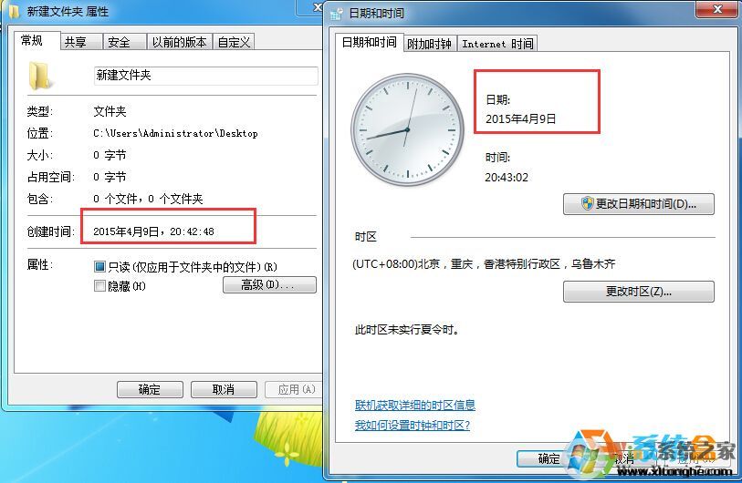 4、然后我們創(chuàng)建一個(gè)新的文件夾,然后我們將系統(tǒng)的時(shí)間改回來(lái),大家可以看到這個(gè)文件夾的時(shí)間是2015年4月9日;
