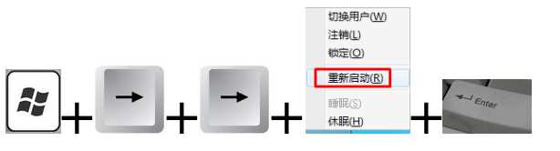 1、按下“Win”徽標(biāo)鍵,按兩下“→”,然后使用上下鍵移到“重新啟動(dòng)”上按下回車鍵即可重啟計(jì)算機(jī)。