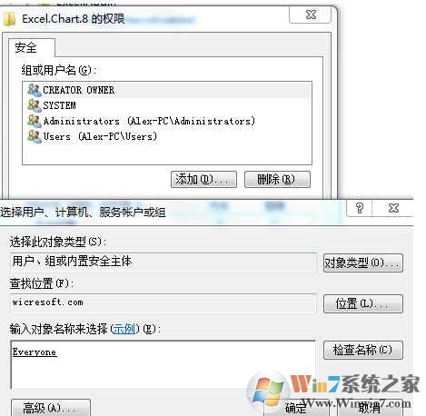 2.然后點擊“添加”,輸入“everyone”-確定: